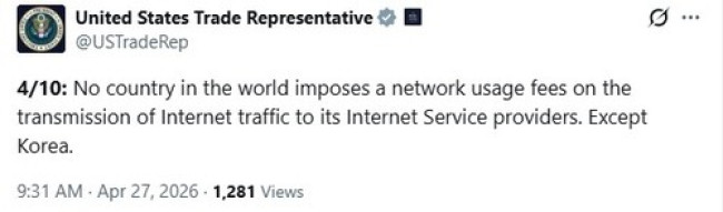 도널드 트럼프 미국 행정부가 한국 내 네트워크 사용료, 이른바 망 사용료 문제를 거론하며 또다시 불만을 표출하면서 그 배경에 관심이 쏠린다.특히 미국 측이 "인터넷 서비스 제공업체에 트래픽 전송에 따른 사용료를 부과하는 나라는 한국을 제외하고는 없다"는 취지의 주장까지 내놓으며 이 발언의 사실관계에도 이목이 쏠린다.다만, 미...
