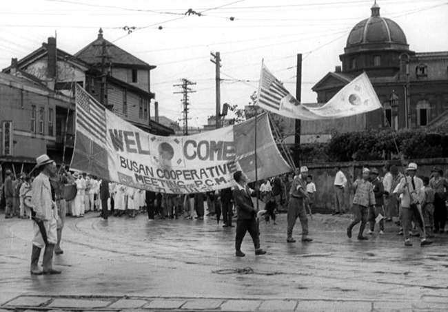 1945년 부산의 미군 진주 환영 시가행진 [사진=한국영상자료원]
