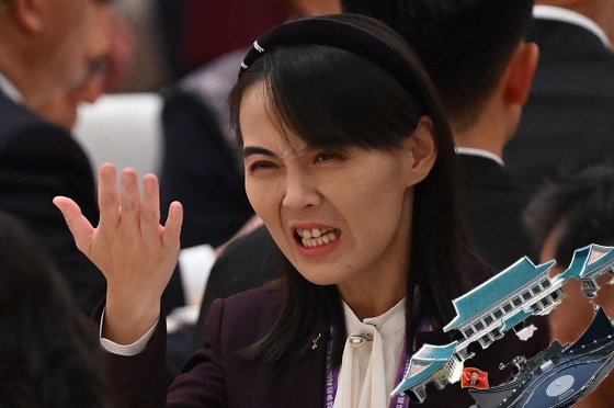 김여정이 작년 9월 베이징에서 열린 열병식 리셉션에 참석해 있다. [AFP=연합뉴스/합성 이미지]