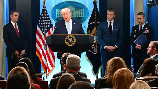 기자회견에는 존 랫클리프 CIA 국장, 피트 헤그세스 전쟁부 장관, 댄 '레이진' 케인 합참의장이 함께 했다.