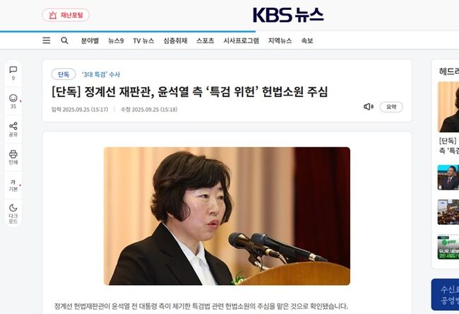 정계선 헌법재판관이 윤석열 전 대통령 측이 제기한 특검법 관련 헌법소원의 주심을 맡은 것으로 확인됐다고 KBS가 25일 단독 보도했다.