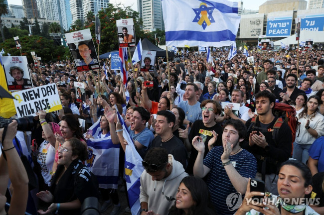 이스라엘 전역에서는 수많은 사람이 인질 인도 과정을 생중계로 지켜봤다. 텔아비브 '인질 광장'에 모인 시민들은 방송에서 석방 인질들의 이름이 호명되자 환호성을 지르며 박수쳤다.