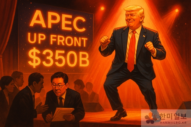 그러나 9월 26일 트럼프 대통령은 기자회견에서 “Japan 550 billion, South Korea 350 billion. That’s up front.”라고 말했다. 그의 발언 어디에도 ‘cash’라는 단어는 없었다. ‘Up front’는 외교와 통상에서 ‘조기 약정’, ‘선제 이행’을 뜻하는 표현이다. 트럼프에게 중요한 건 돈의 방식이 아니라 약속의 속도였다. “당장 내라”가 아니라 “지금 약속하라”는 뜻이다.