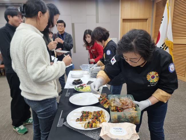 행사 시간에 맞추느라 새벽 2시까지 만들어 경북 포항에서 새벽 3시에 출발했다는 조필주·이경순 한식협회 조리명인은 “비 오고 길이 막혀 애를 먹었지만 많은 사람에게 포항 과메기를 알려야겠다는 일념으로 부지런히 달려왔다”고 밝혔다.