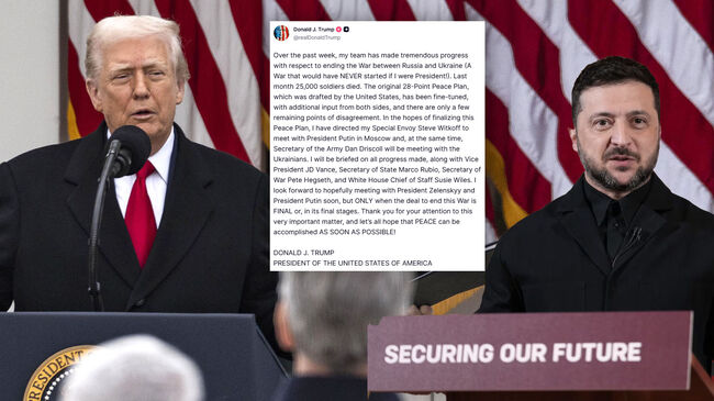 트럼프 대통령은 "이 평화구상의 최종 타결을 위해, 나는 스티브 위트코프(Steve Witkoff) 특사에게 모스크바에서 푸틴 대통령과 회담하도록 지시했으며, 동시에 댄 드리스콜(Dan Driscoll) 육군 장관은 우크라이나 측과 회담할 예정"이라고 밝혔다.