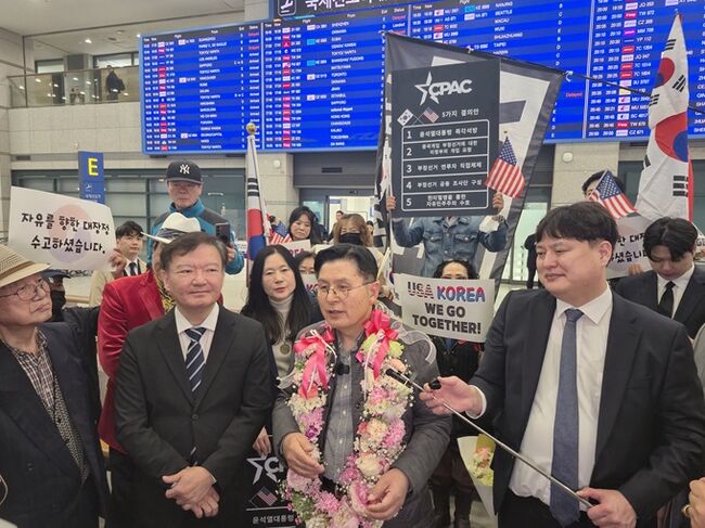 황교안 자유와혁신 대표가 31일 인천국제공항을 통해 미국에서 귀국했다. 황교안 자유와혁신 당대표가 미국 최대 규모의 보수주의 콘퍼런스(CPAC)에서 “부정선거로 국회를 장악한 친중파의 공작으로 윤석열 대통령이 탄핵됐다”는 사실을 알리고 “중국 공산당(CCP)의 한국 부정선거 개입 의혹에 대한 한미 공동 합동조사 결의안 ...