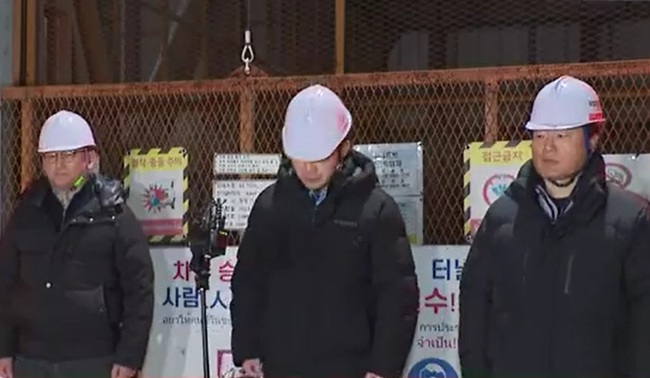 “머리 숙여 사죄…” 여의도 신안산선 공사장 철근 붕괴 현장 찾은 포스코이앤씨 대표