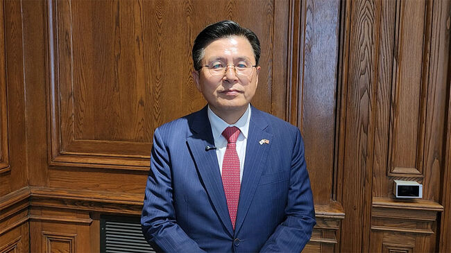황교안 자유와혁신당 대표가 25일(현지시간) 미국 워싱턴에서 뉴스앤포스트(NNP)와 인터뷰하고 있다. / 사진=NNP-한미일보 공동 취재.