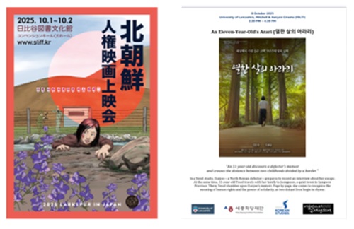 서울락스퍼국제영화제가 오는 10월 1일(수)~2일(목 )일본 도쿄 히비야도서문화관과, 10월 8일(수)~10일(금) 영국 런던 랭커스터대학과 SOAS대학 등지에서 북한인권 영화 상영회를 개최한다고 밝혔다.
