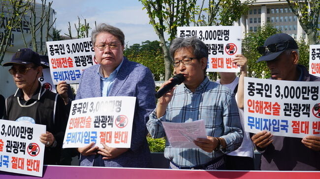 정부가 지난 9월 29일부터 내년 6월 30일까지 중국인 단체관광객의 무비자 입국을 한시적으로 허용한 가운데, 국민안전과 국가안보를 우려하는 단체들이 정책 철회를 촉구하고 나섰다.