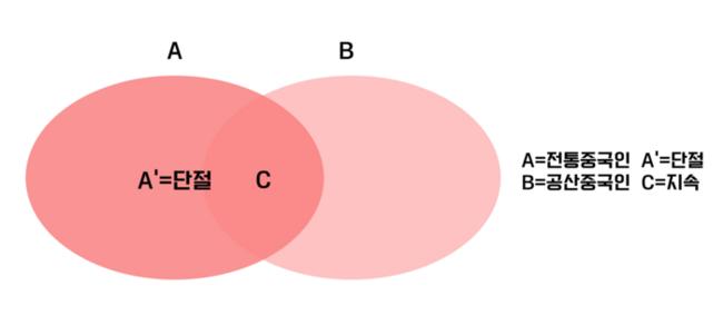 이러한 성향을 지닌 공산중국인들은 중공이나 국가에 저항하는 대신 만만한 약소국에 불만을 폭발시키는 비굴함이 주류를 이루고 있다. 위 도표에서처럼 전통중국인에게는 A의 요소가 강했는데, 공산중국인에게는 이러한 특성이 사라지고 대신 B의 특성이 강한 모습이 나타났다. A에는 ①강인함 ②도의적 가치판단 및 생활태도 ③예의와 염치 ④자존감이 있고, B에는 ⑤공적인 일에 대한 무신경과 무관심 ⑥냉혹, 냉담 ⑦냉소적이며 이기적이고 ⑧연약하고 비겁한 성향 등을 꼽을 수 있다.