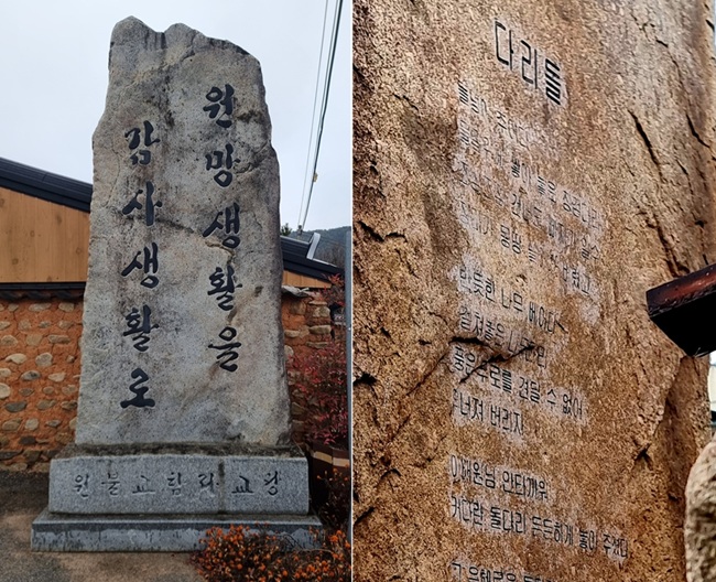 한옥 입구에 세워둔 원불교함라교당 입석은 원래 집 앞 실개천의 다리돌이었다고 한다. 실제로 입석 뒤편에 다리돌이라는 글씨가 새겨져 있다.