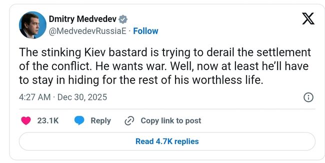 플라이츠는 '아메리칸 어젠다' 프로그램에 출연해 메드베데프가 월요일 엑스(X)에 올린 글에 반응했다. 해당 글에서 메드베데프는 저렌스키를 저속한 표현으로 맹비난하며 우크라이나 지도자가 "그 쓸모없는 인생의 남은 시간 동안 숨어 지내야 할 것"이라고 경고했다.