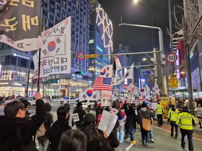 “처음에는 정식 단체라기보다 모임 이름이었어요. 연초 탄핵 시국 때 각종 집회에 나가면서 청년 커뮤니티와 소통하게 됐죠. 광화문 위주로 모이던 집회가 탄핵 시국 때는 교대, 한남동 등으로 확대되는 상황이었어요.”