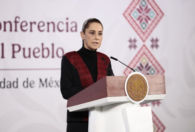 지난해 12월30일(현지시간) 클라우디아 셰인바움 멕시코 대통령이 일반수출입세법(LIGIE) 개정에 관해 기자회견을 하고 있다. [멕시코시티 EPA=연합뉴스]