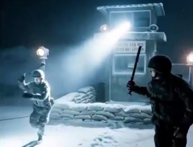 총기 대신 몽둥이로 상황에 대처하는 위병소 군인들의 AI 영상. [사진=유튜브 캡처]