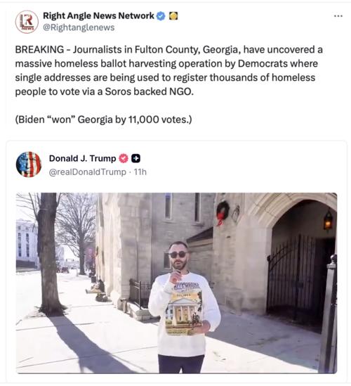 그에 따르면 2020년 당시 극좌 성향의 억만장자 조지 소로스가 지원하는 시민단체를 통해 홈리스 수천 명이 한꺼번에 이 장소를 주소지로 유권자 등록한 뒤 바이든에게 몰표를 던진 의혹이 있다는 것이다. 바이든은 조지아주에서 1만1000표 차이로 트럼프 후보를 제친 것으로 선거당국은 집계·발표했다.