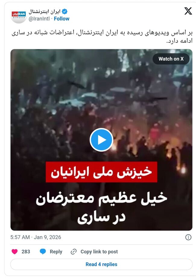 이란 수도 테헤란에서는 망명 중인 왕세자의 대규모 시위 촉구에 따라 시민들이 거리로 나와 시위를 벌였고, 이란 전역으로 시위가 확산되면서 새로운 국면으로 접어들었다고 AP통신이 8일(현지시간) 보도했다.