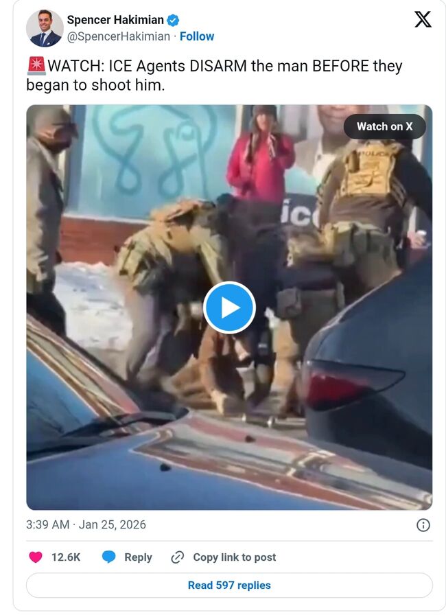그러나 주류언론과 민주당은 현장에서 촬영된 영상들이 증거라며 알렉스 프레티(Alex Pretti,37)가 살해된 것이라고 주장하면서 긴장이 고조되고 있다.