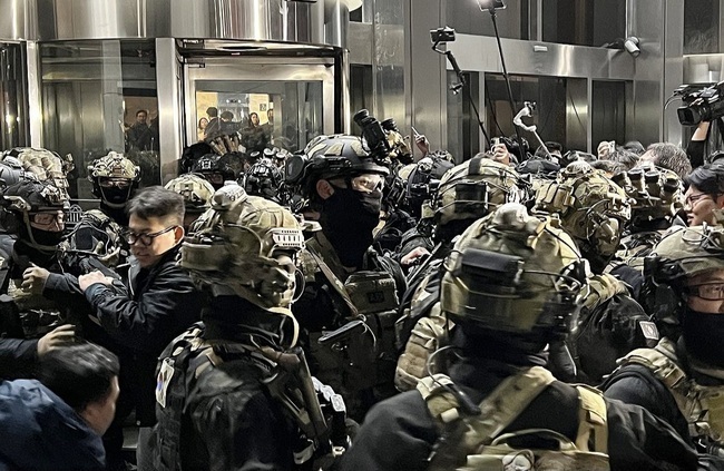 윤석열 대통령이 비상계엄을 선포한 2024년 12월4일 새벽 서울 여의도 국회의사당에 투입된 계엄군. [연합뉴스]