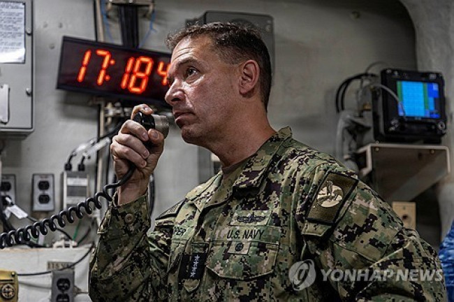 항공모함 니미츠호 탑승한 브래드 쿠퍼 미 중부사령관 [로이터=연합뉴스]