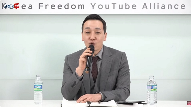 9일 보수 유튜브들이 공동 주최한 ‘대한민국자유유튜브 총연합회 토론회’에 출연해 발언하는 김민수 국민의힘 최고위원. [사진=유튜브 캡처]