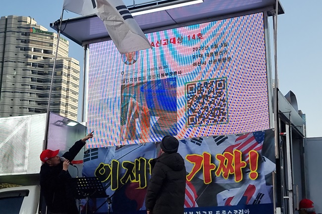 서버까국민운동본부(서버까) 주최로 서울역 광장에서 21일 열린 부정선거 규탄 집회에서 장재언 박사와 이상로 정치평론가는 ‘벽돌 투표지’를 정규 투표지로 처리한 의혹과 관련된 선관위원장 15명을 미국 중앙정보국(CIA)에 신고한다는 핵폭탄급 주장을 펼쳤다.