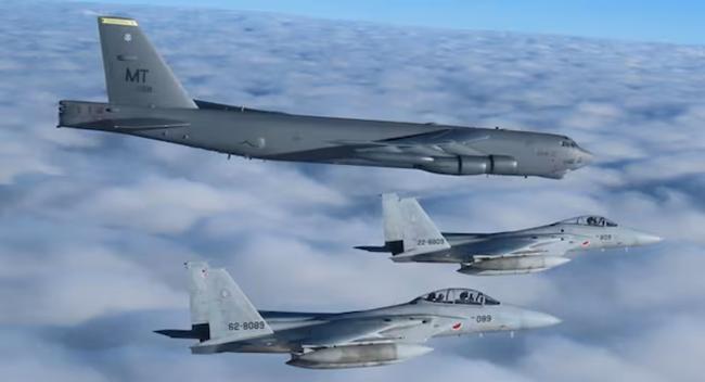 미국과 일본은 2월16일과 18일 동해와 동중국해에서 연합훈련을 실시했다. 미국의 B‑52 전략폭격기 4대와 일본 항공자위대의 F‑2, F‑15 전투기가 참여한 대규모 공중훈련이었다.