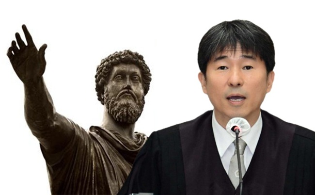 5현제의 마지막 황제인 마르쿠스 아우렐리우스(왼쪽)와 지귀연 판사.