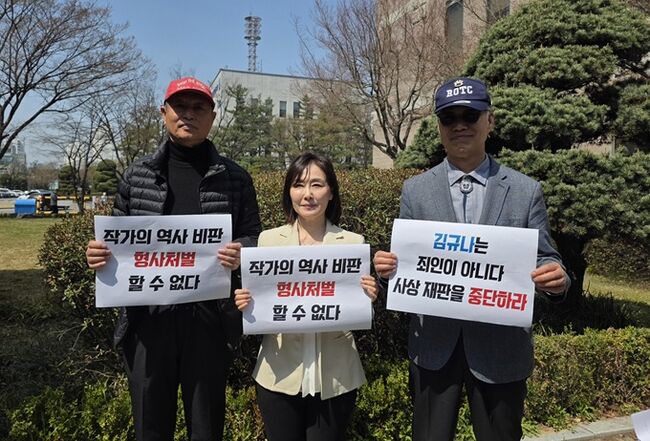 정광제 자유주의작가회의 사무총장은 성명서를 통해 “이번 재판은 한 개인의 형사사건이 아니다. 대한민국에서 작가가 역사에 대해 문제를 제기하고, 공적 기억과 국가가 승인한 해석에 이견을 제시할 수 있는지, 그 한계를 어디까지 허용할 것인지가 걸린 사건”이라고 주장했다.