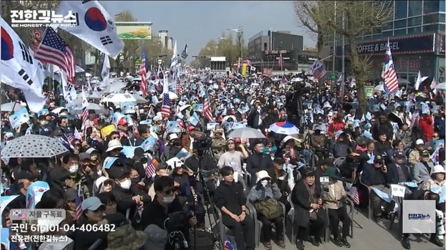 김 대표는 끝으로 “전한길 대표를 구속시키기 위해 이재명이가 얼마나 검찰을 협박하고 겁박하겠나”라며 “이따 더 많은 분이 윤석열 대통령 구하자, 부정선거 척결하자 연설하실 테니까 저는 이걸 먼저 외치겠다, ‘전한길을 구하자’”라고 호소하면서 연설을 마무리했다.