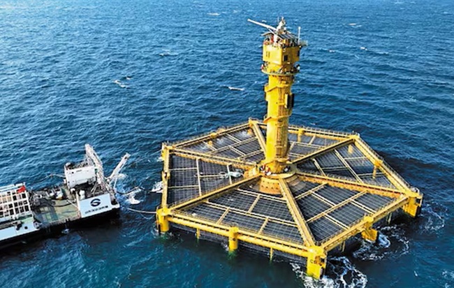 한·중 공동관리구역에 중국이 설치한 직경 70m, 높이 71m의 구조물 ‘셴란 2호’. [신화=연합뉴스]