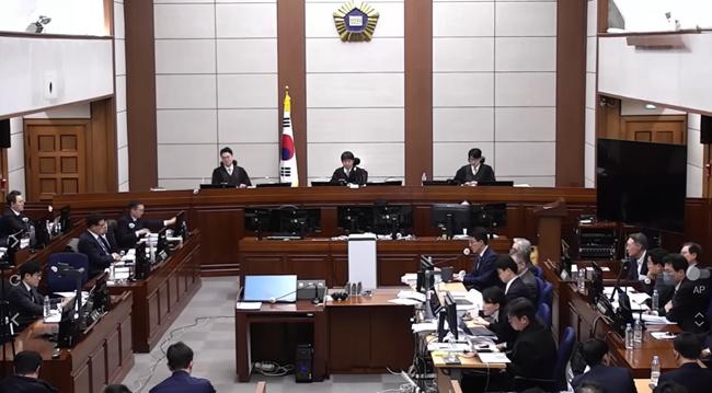 서울중앙지법 형사대법정 417호에서 9일 열린 윤석열 대통령 12·3계엄 관련 결심 공판에서 한미일보 유튜브 영상이 PPT 자료로 활용돼 눈길을 끌었다.