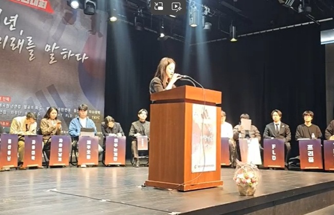 8월20일 자유와혁신당 압수수색을 나온 경찰이 당원들의 저지로 2층 계단에서 기다리는 모습. 한미일보