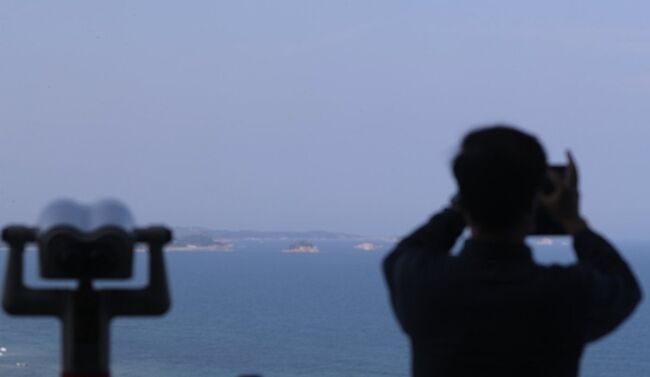 강원 고성군 현내면 통일전망대에서 관광객들이 금강산과 북측 지역을 바라보고 있다. 연합뉴스
