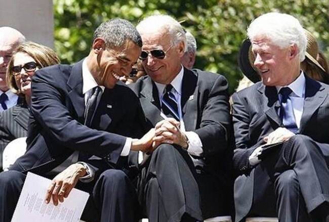왼쪽부터 오바마, 바이든, 클린턴 전 미국 대통령. 연합뉴스