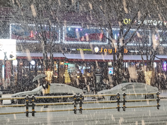 끝없이 내릴 것 같은 눈은 30분가량 퍼붓다 그쳤지만 이날 기온이 많이 떨어져 있던 탓에 눈은 바로 녹지 않았다. 차도와 인도를 점령한 첫눈은 그렇게 오랫동안 자신의 존재감을 과시했다.