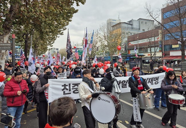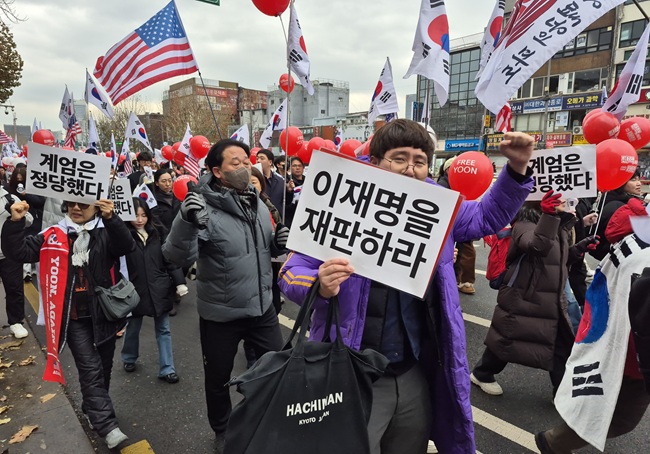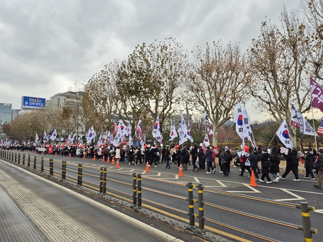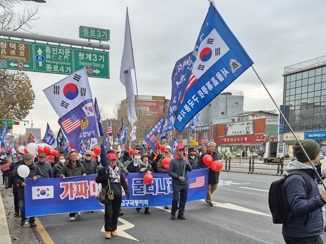 남녀노소 할 것 없이 하나된 마음으로 거리로 쏟아져 나와 “12·3계엄은 합헌” “이재명을 재판하라” “계엄은 정당했다” 등의 문구가 쓰인 손팻말을 들고 행진을 이어갔다.
