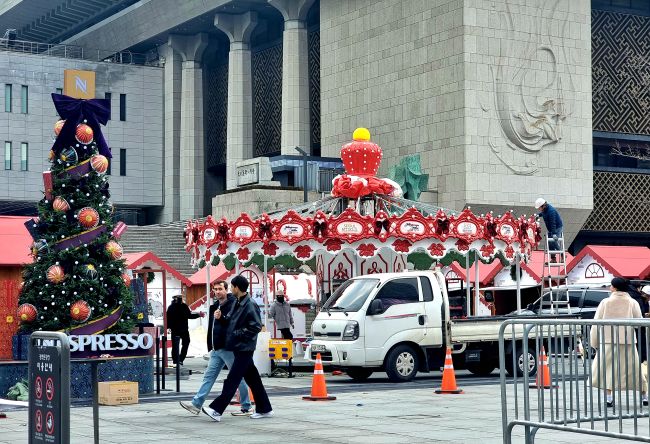 2025광화문마켓 12일 오픈을 앞두고 무료 회전목마를 설치하고 있다. 임요희 기자