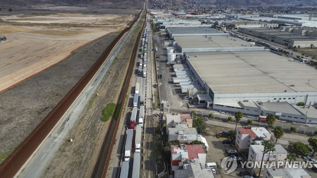 미국으로 가기 위해 멕시코 도로에서 대기 중인 화물차 행렬. EPA 연합뉴스