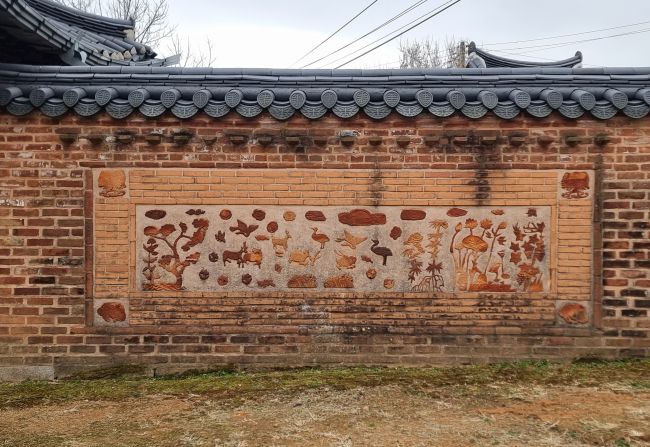 조해영가옥에는 학·사슴·구름·연꽃 등 십장생이 그려진 꽃담이 있어 안채와 사랑채를 가르고 있다.