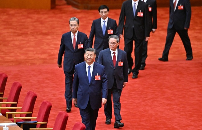 시진핑 등 중국 공산당 지도부가 2024년 제20기 중앙위원회 제3차 전체회의(3중전회) 행사장에 입장하고 있다. [신화=연합뉴스]