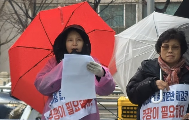 이에 대한민국 엄마부대(대표 주옥순)가 23일 서울 송파구 쿠팡 본사 앞에서 민주노총에 항의하는 시위를 열고 공식 성명서를 발표했다.