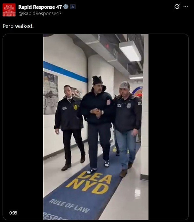 앞서 마두로 대통령은 전날 베네수엘라 수도 카라카스의 안전가옥에서 미군의 기습 작전에 체포돼 헬기와 강습상륙함 이오지마함, 항공기, 헬기 등에 태워져 뉴욕으로 압송됐다.