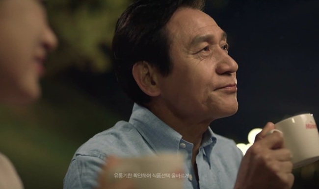 커피 광고(2015) 모델로 활약하던 시절의 안성기. [사진=동서커피]