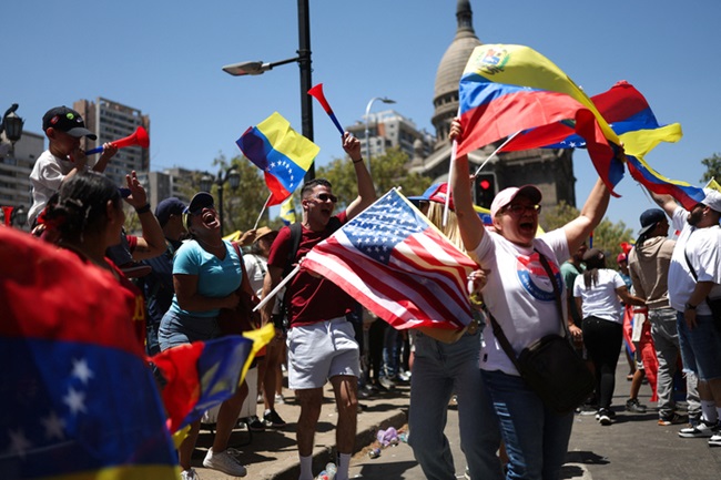이번 마두로 퇴치에 대해 베네수엘라 국민의 70% 이상이 전폭적 지지를 보내며 환호했다. [로이터=연합뉴스] 이러한 상황은 마찬가지로 부정선거를 통해 정권을 획득한 것이 확실해 보이는 우리나라의 좌파 정권을 돌아보게 한다.