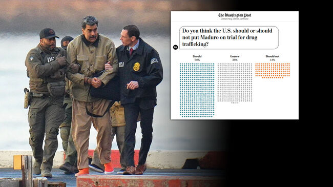 워싱턴포스트(WP)의 새 여론조사에 따르면 미국인의 대다수가 마두로를 법정에 세우는 것을 지지하는 것으로 나타났다. 조사에 따르면 미국 마약 밀매 혐의로 기소된 전 베네수엘라 실권자에 대한 재판을 찬성하는 응답자는 50%인 반면, 반대하는 응답자는 14%에 불과했다.