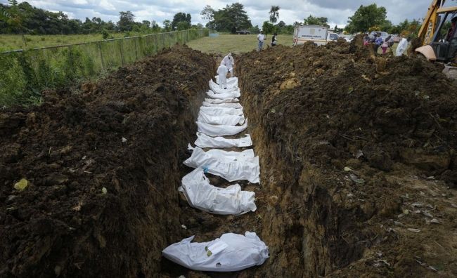 다리엔 갭에서 발견된 이민자들의 시신이 파나마 묘지에 매장되고 있다. [AP=연합뉴스]