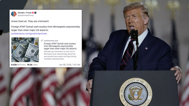 트럼프는 '진실 소셜'에 "모두 체포하라. 그들은 범죄자들이다!!!"라고 적으며 미니애폴리스에서 발생한 '소말리아 현금 유출'에 관한 저스트더뉴스 기사를 공유했다. 그는 이 현상이 다른 주요 미국 공항에서 관측된 활동 규모를 훨씬 능가한다고 주장했다.