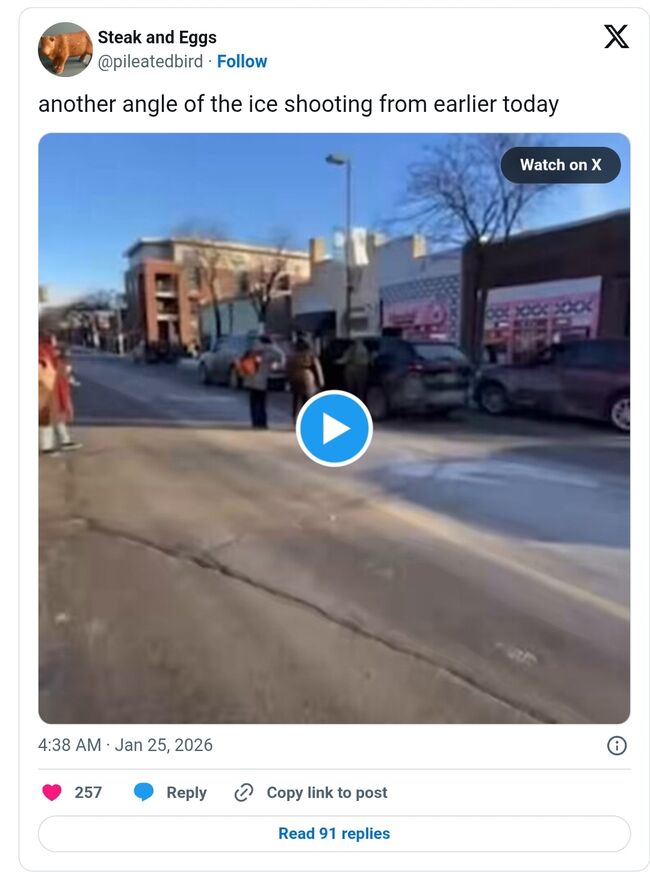 그러나 주류언론과 민주당은 현장에서 촬영된 영상들이 증거라며 알렉스 프레티(Alex Pretti,37)가 살해된 것이라고 주장하면서 긴장이 고조되고 있다.